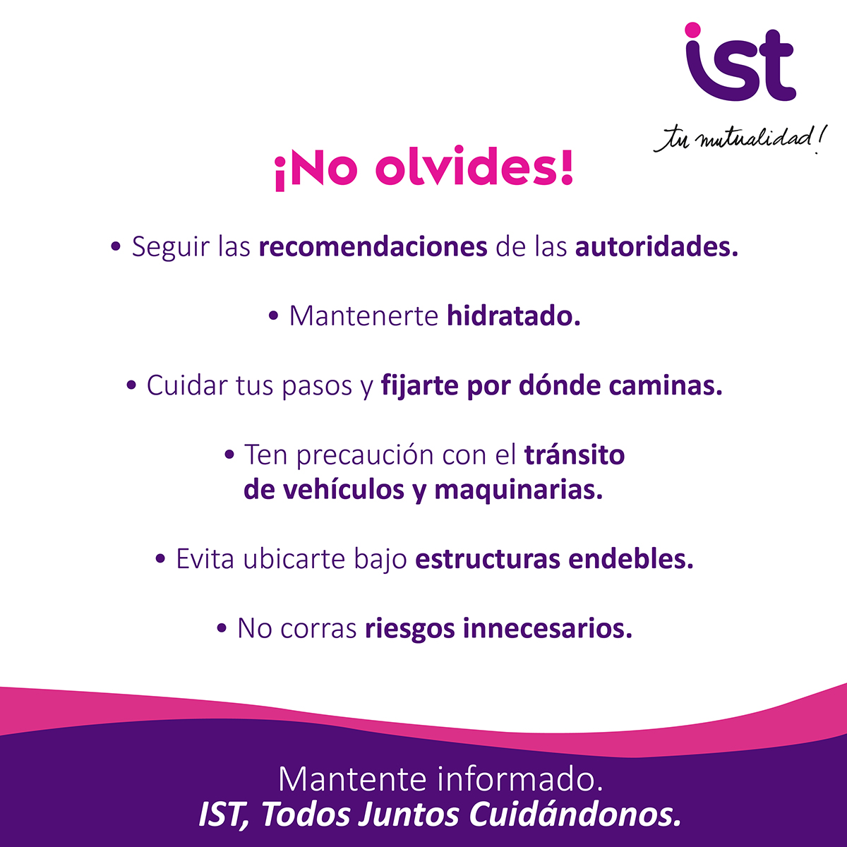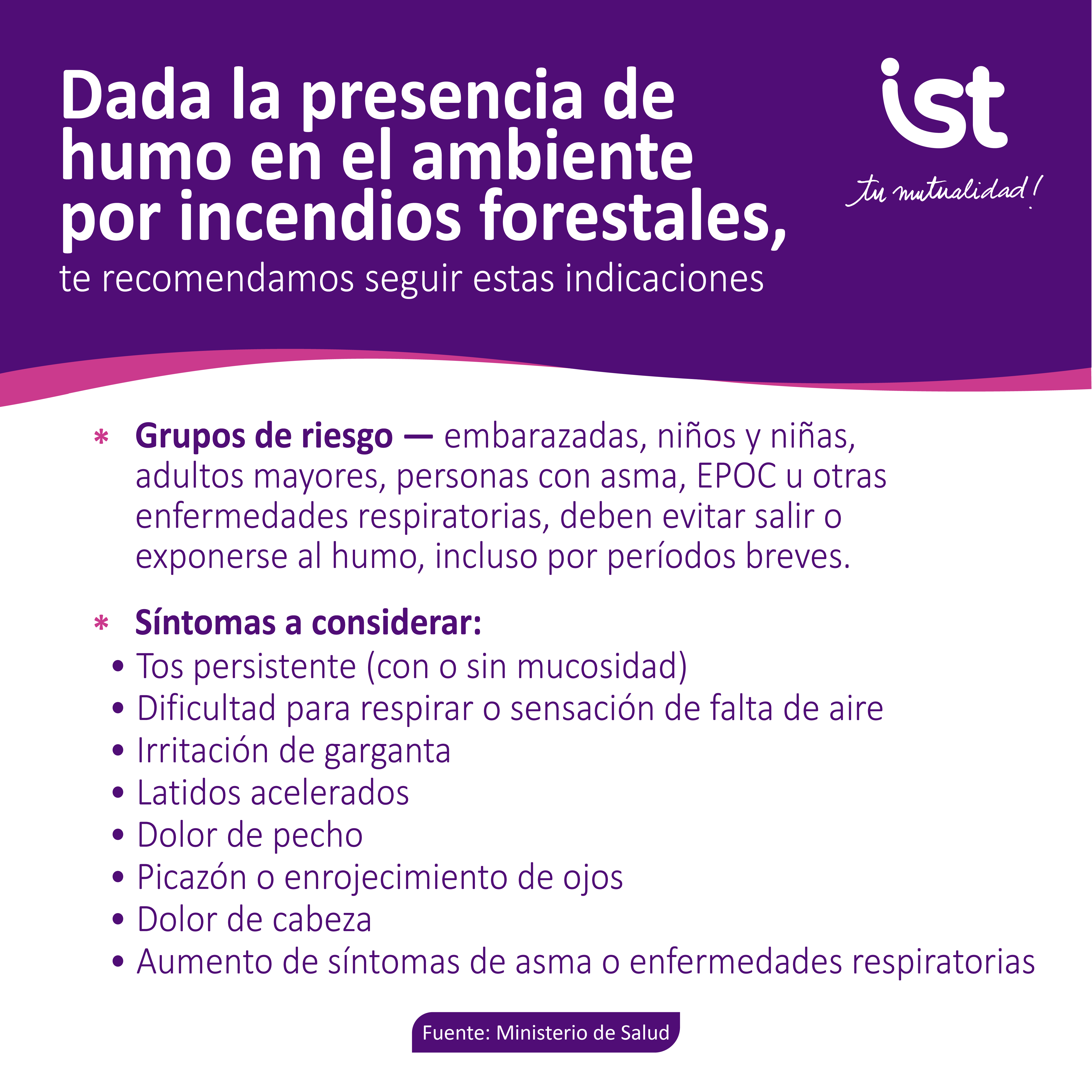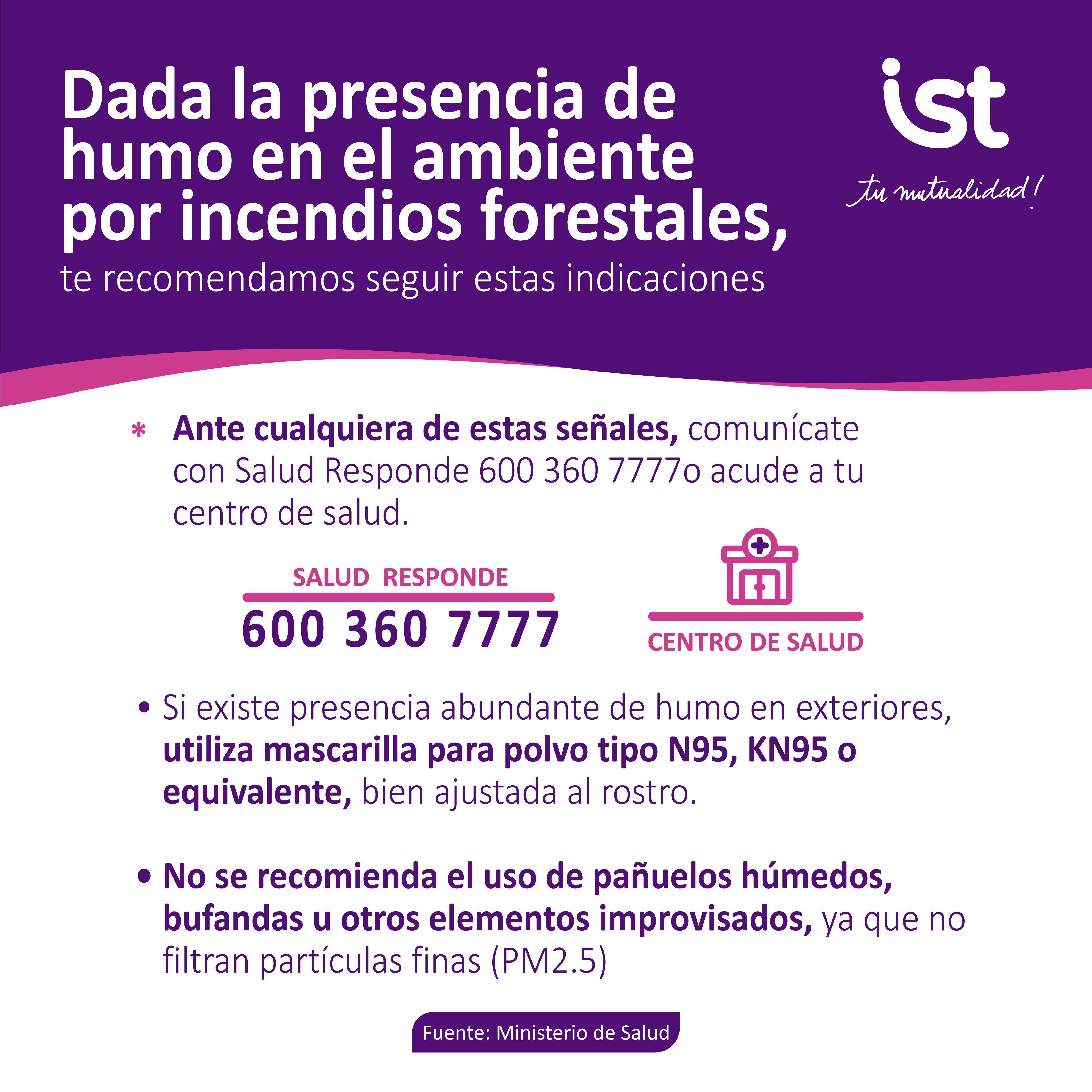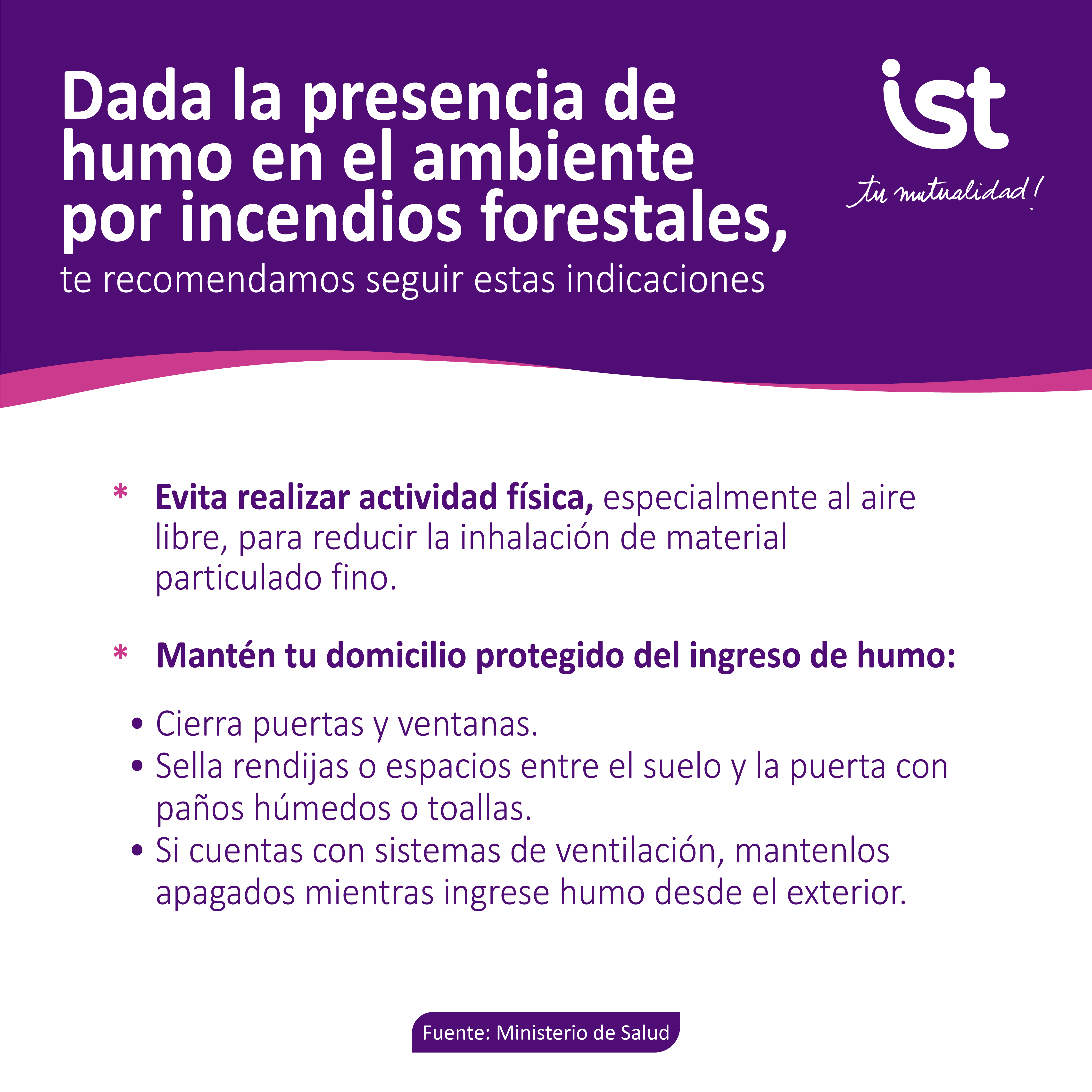 Pequeñas acciones pueden marcar una gran diferencia. En IST te entregamos medidas preventivas ante focos de humo. Prevenir es clave para cuidarnos entre todos y mantener entornos más seguros para nuestras comunidades.